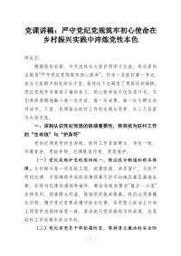 党课讲稿:严守党纪党规筑牢初心使命在乡村振兴实践中淬炼党性本色