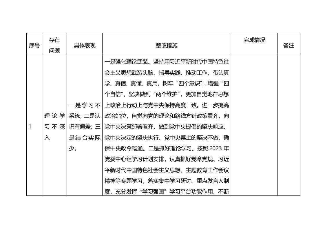 第二批主题教育清单及整改措施情况台账表格(查摆、六个方面存在问题及整改措施)