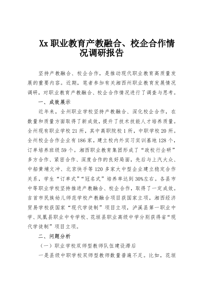 首页精选范文Xx职业教育产教融合、校企合作情况调研报告