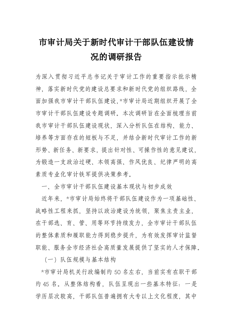 市审计局关于新时代审计干部队伍建设情况的调研报告