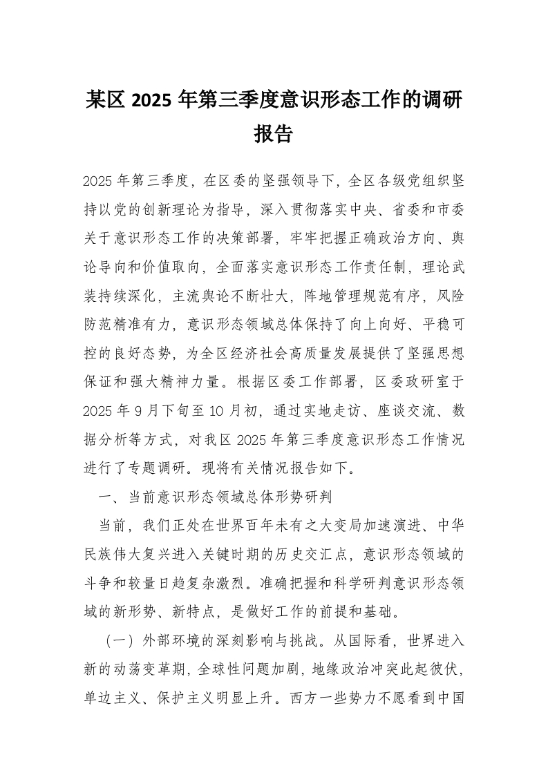 首页写作素材某区2025年第三季度意识形态工作的调研报告