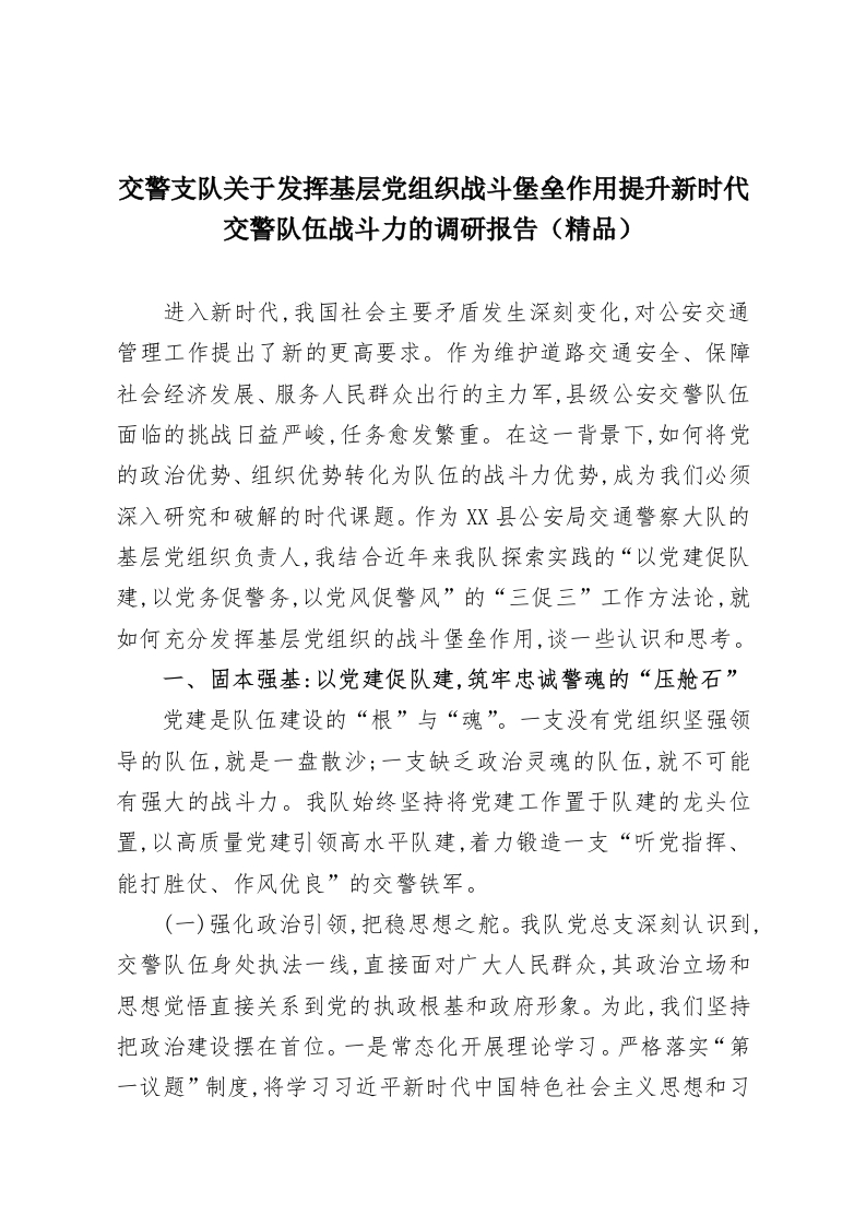 交警支队关于发挥基层党组织战斗堡垒作用提升新时代交警队伍战斗力的调研报告(精品)