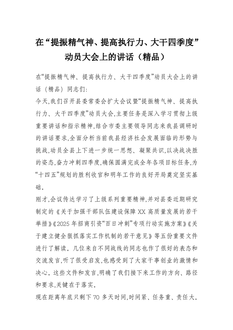 在“提振精气神、提高执行力、大干四季度”动员大会上的讲话(精品)