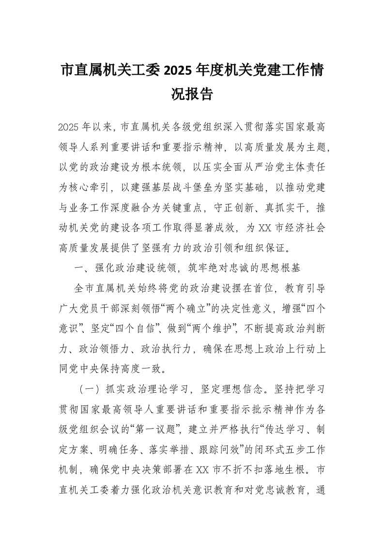 首页学习提升市直属机关工委2025年度机关党建工作情况报告