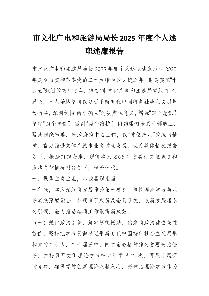 市文化广电和旅游局局长2025年度个人述职述廉报告