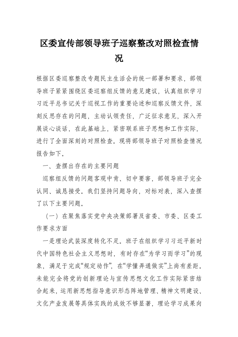 首页学习提升区委宣传部领导班子巡察整改对照检查情况