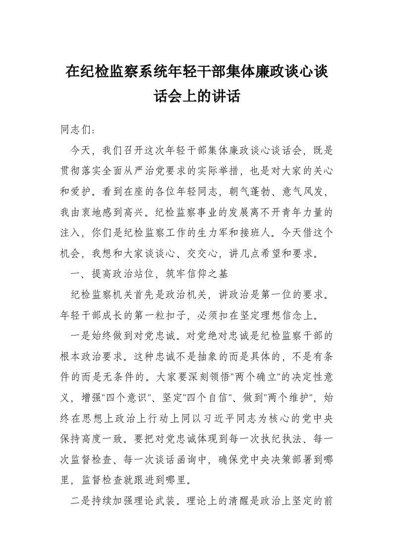 在纪检监察系统年轻干部集体廉政谈心谈话会上的讲话