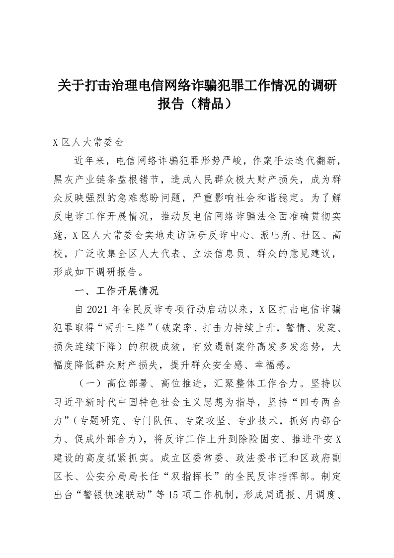 关于打击治理电信网络诈骗犯罪工作情况的调研报告(精品)