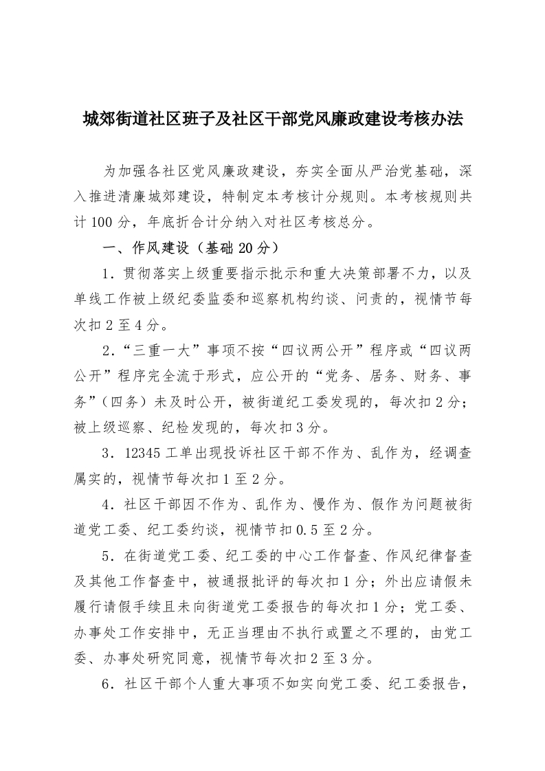 城郊街道社区班子及社区干部党风廉政建设考核办法