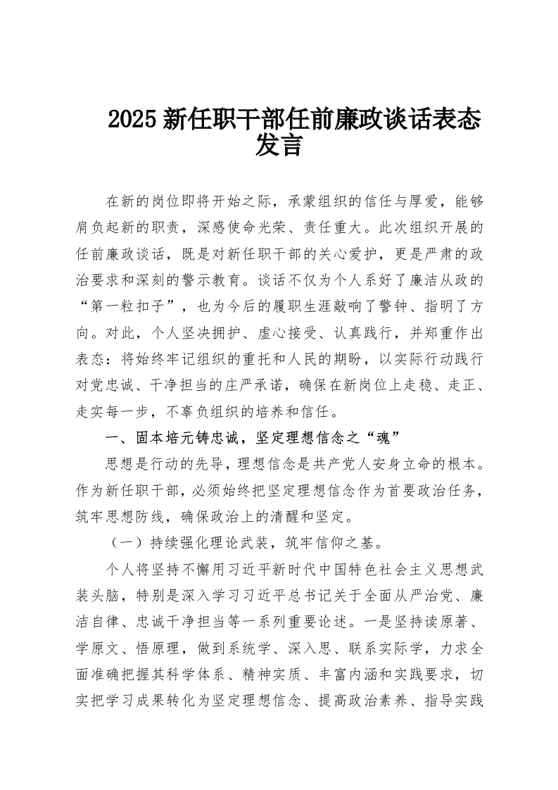 首页精选范文2025新任职干部任前廉政谈话表态发言