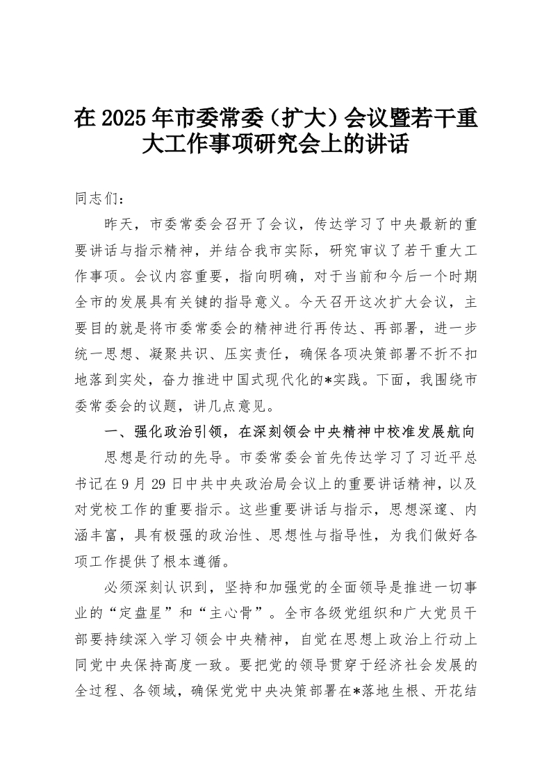 在2025年市委常委(扩大)会议暨若干重大工作事项研究会上的讲话