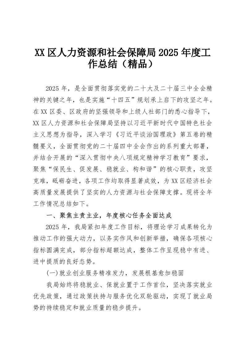 首页精选范文XX区人力资源和社会保障局2025年度工作总结(精品)