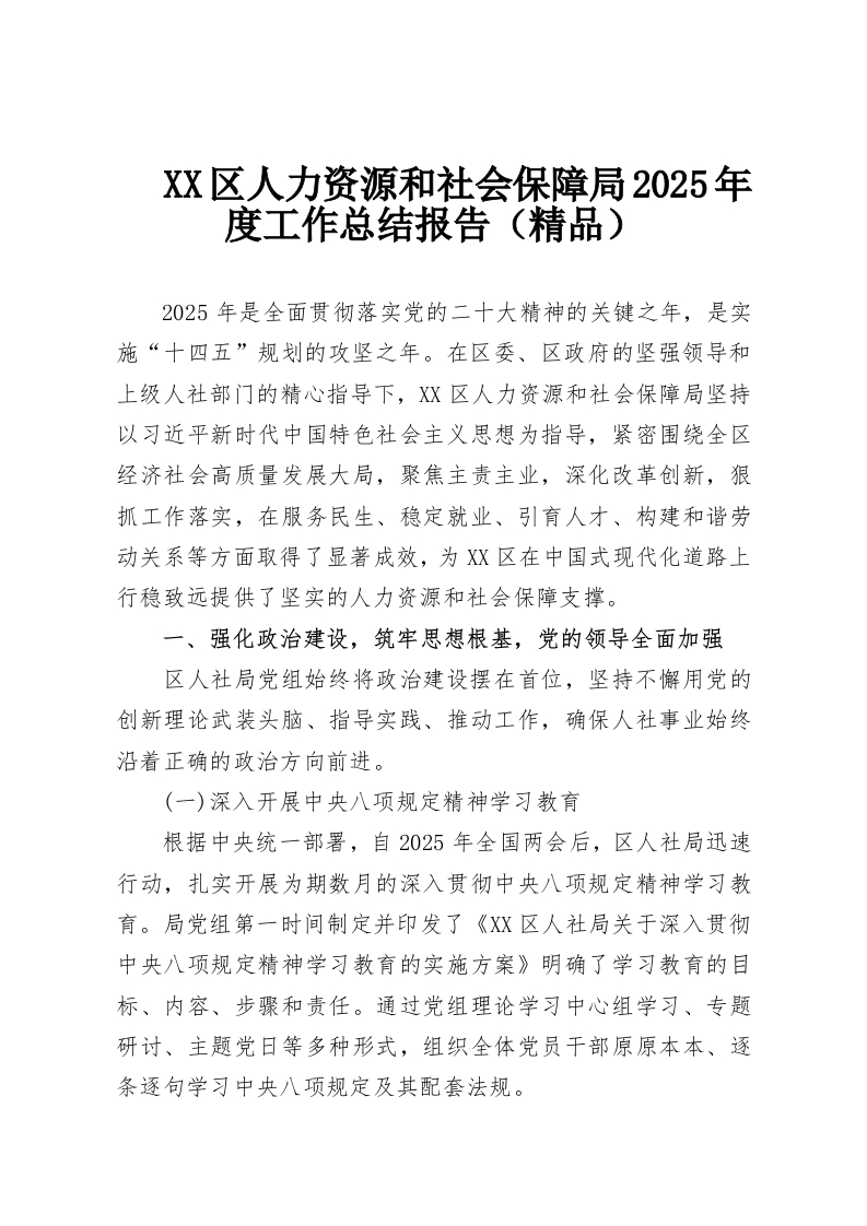XX区人力资源和社会保障局2025年度工作总结报告(精品)