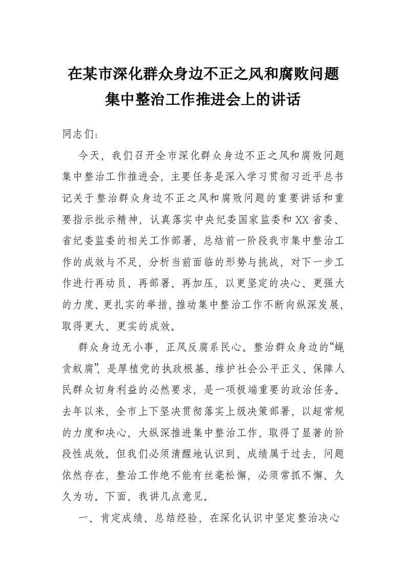 在某市深化群众身边不正之风和腐败问题集中整治工作推进会上的讲话