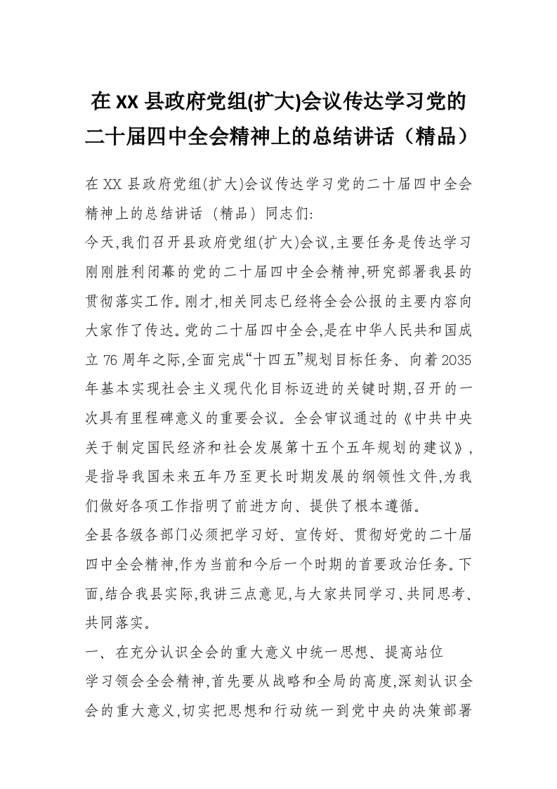 首页讲课讲稿在XX县***党组(扩大)会议传达学习党的二十届四中***精神上的总结讲话(精品)
