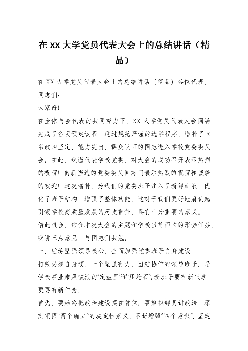 首页讲课讲稿在XX大学党员代表大会上的总结讲话(精品)