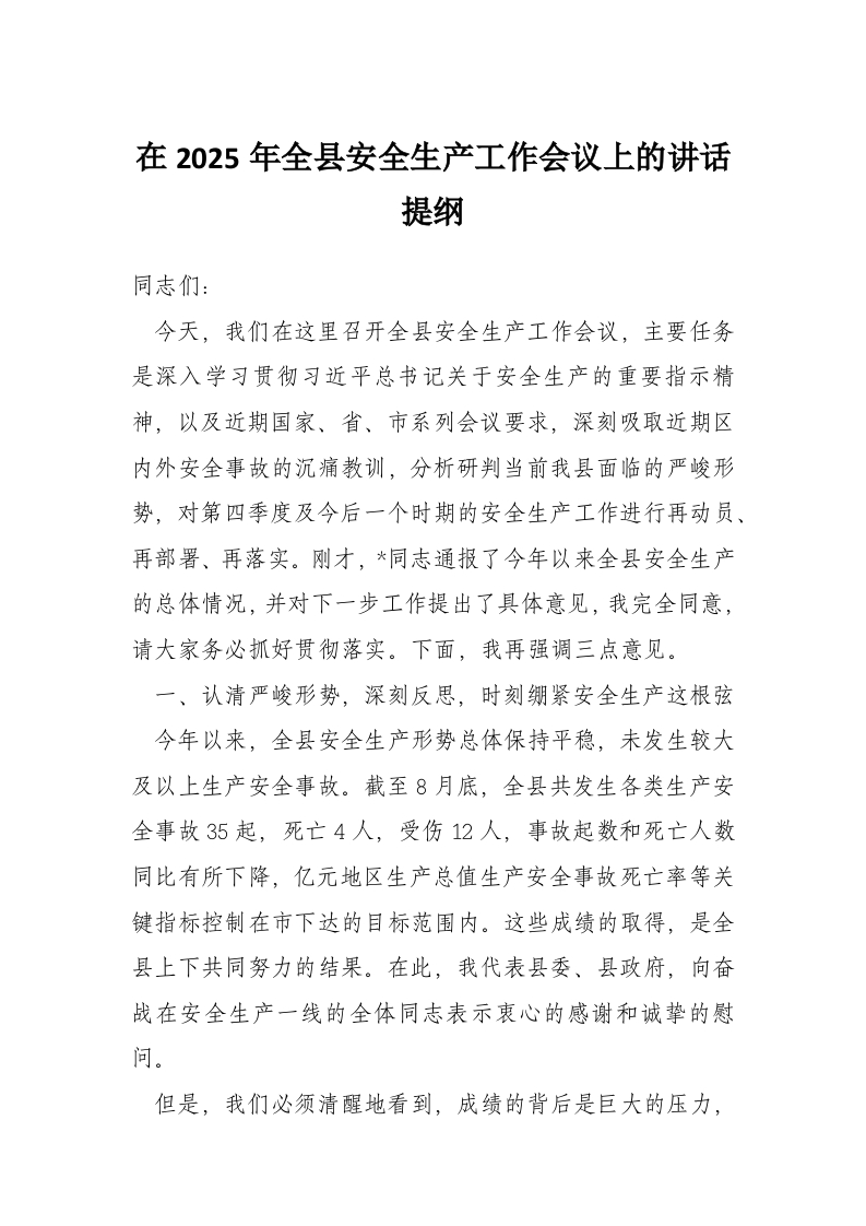 首页讲课讲稿在2025年全县安全生产工作会议上的讲话提纲