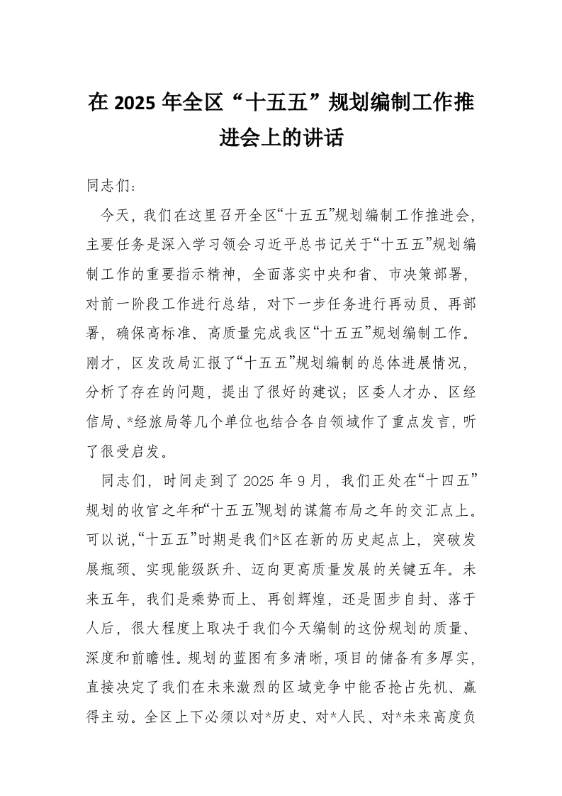 在2025年全区“十五五”规划编制工作推进会上的讲话