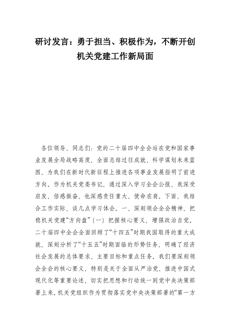 首页写作素材研讨发言:勇于担当、积极作为,不断开创机关党建工作新局面