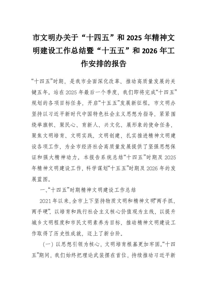 首页写作素材市文明办关于“十四五”和2025年精神文明建设工作总结暨“十五五”和2026年工作安排的报告