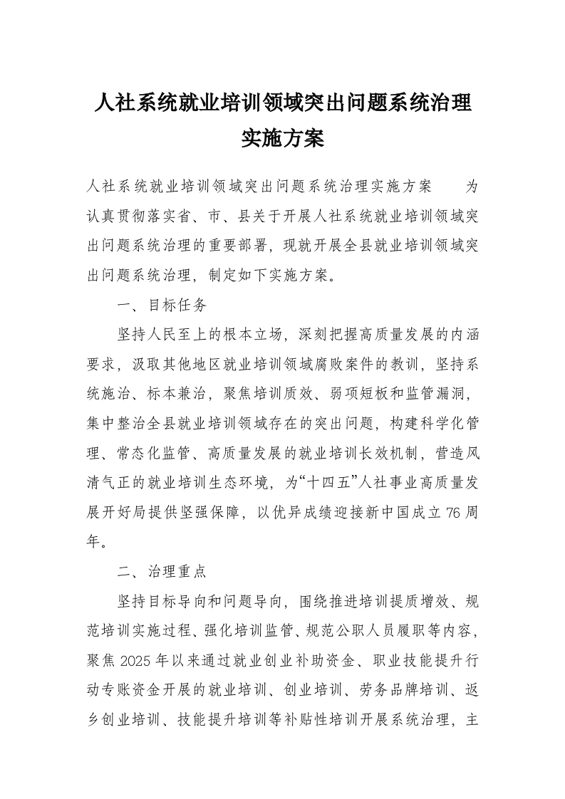 首页写作素材人社系统就业培训领域突出问题系统治理实施方案