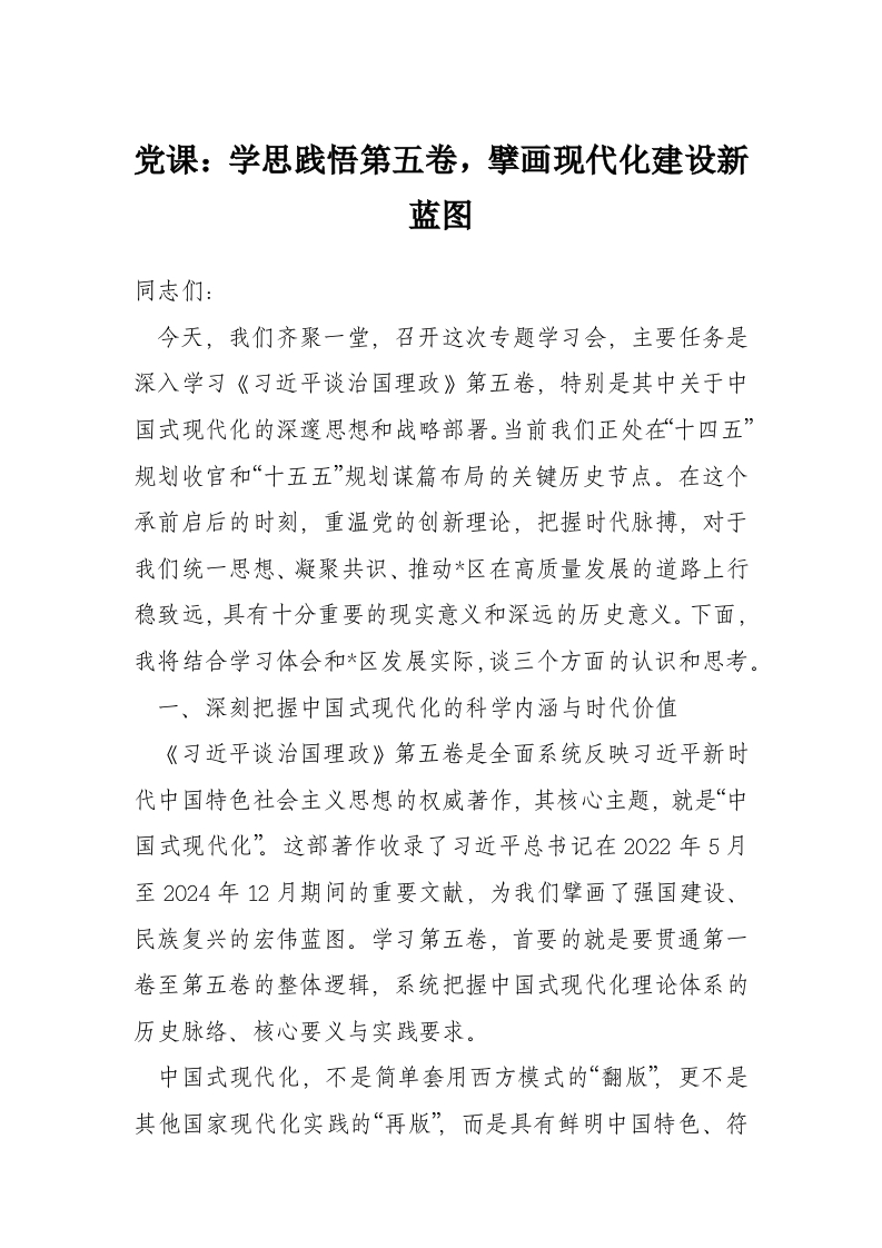 党课:学思践悟第五卷,擘画现代化建设新蓝图