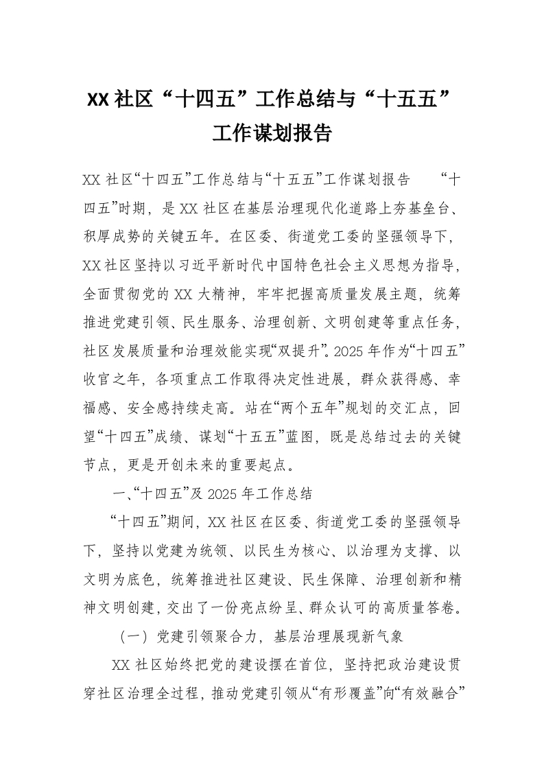 XX社区“十四五”工作总结与“十五五”工作谋划报告