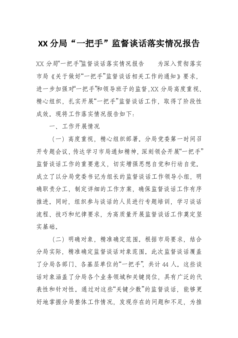 首页学习提升XX分局“一把手”监督谈话落实情况报告