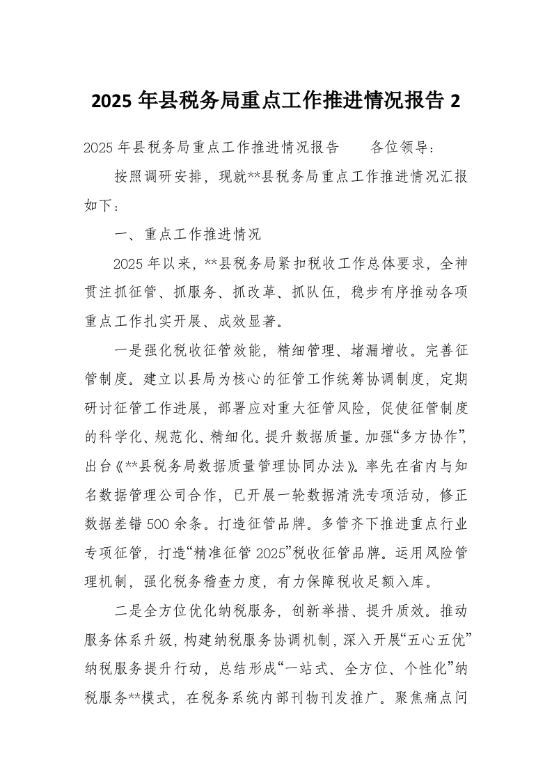 首页学习提升2025年县税务局重点工作推进情况报告2