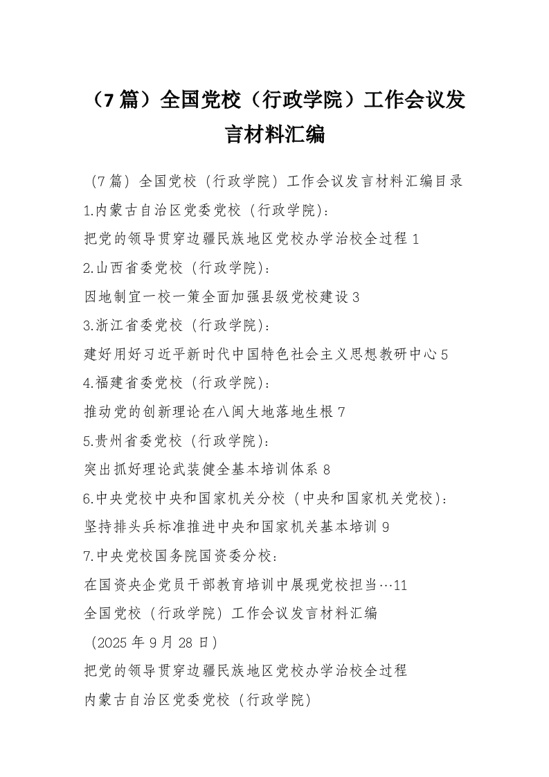 (7篇)全国党校(行政学院)工作会议发言材料汇编
