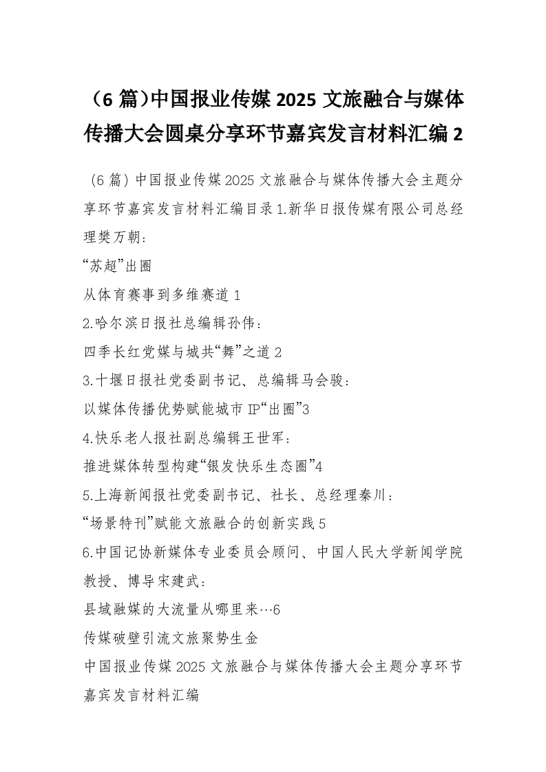 (6篇)中国报业传媒2025文旅融合与媒体传播大会圆桌分享环节嘉宾发言材料汇编2
