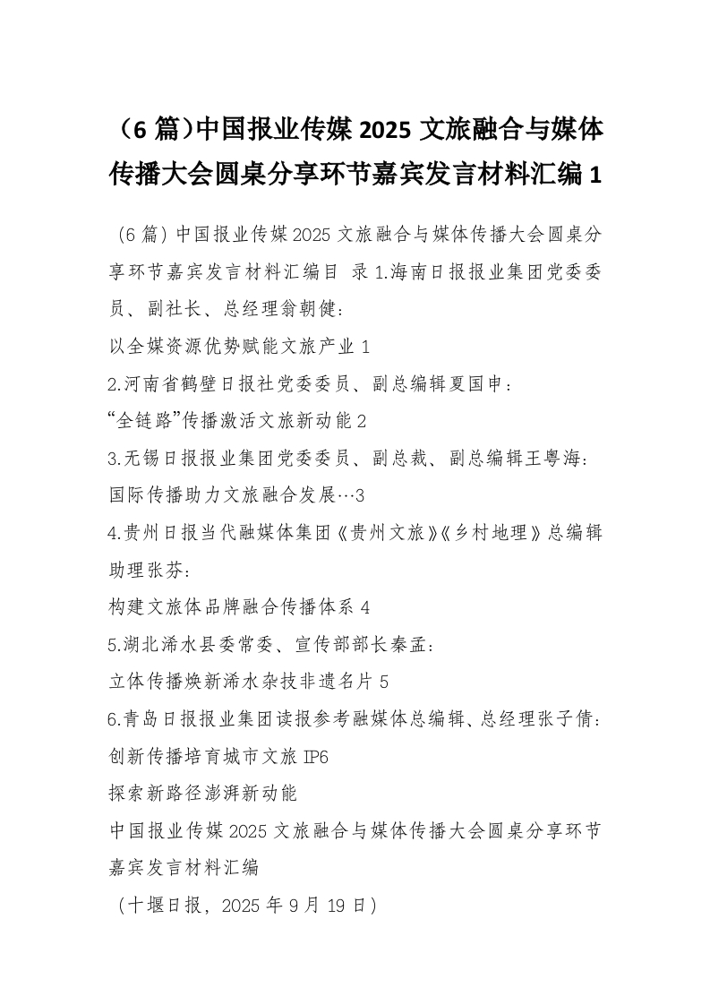 (6篇)中国报业传媒2025文旅融合与媒体传播大会圆桌分享环节嘉宾发言材料汇编1