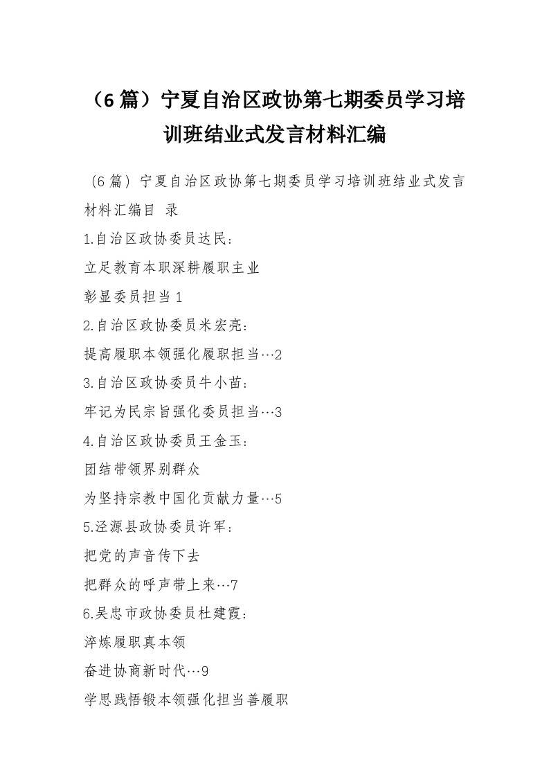 (6篇)宁夏自治区政协第七期委员学习培训班结业式发言材料汇编