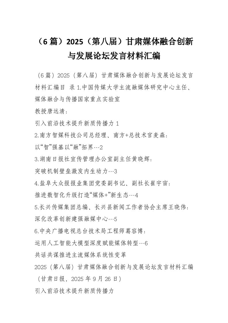 (6篇)2025(第八届)甘肃媒体融合创新与发展论坛发言材料汇编