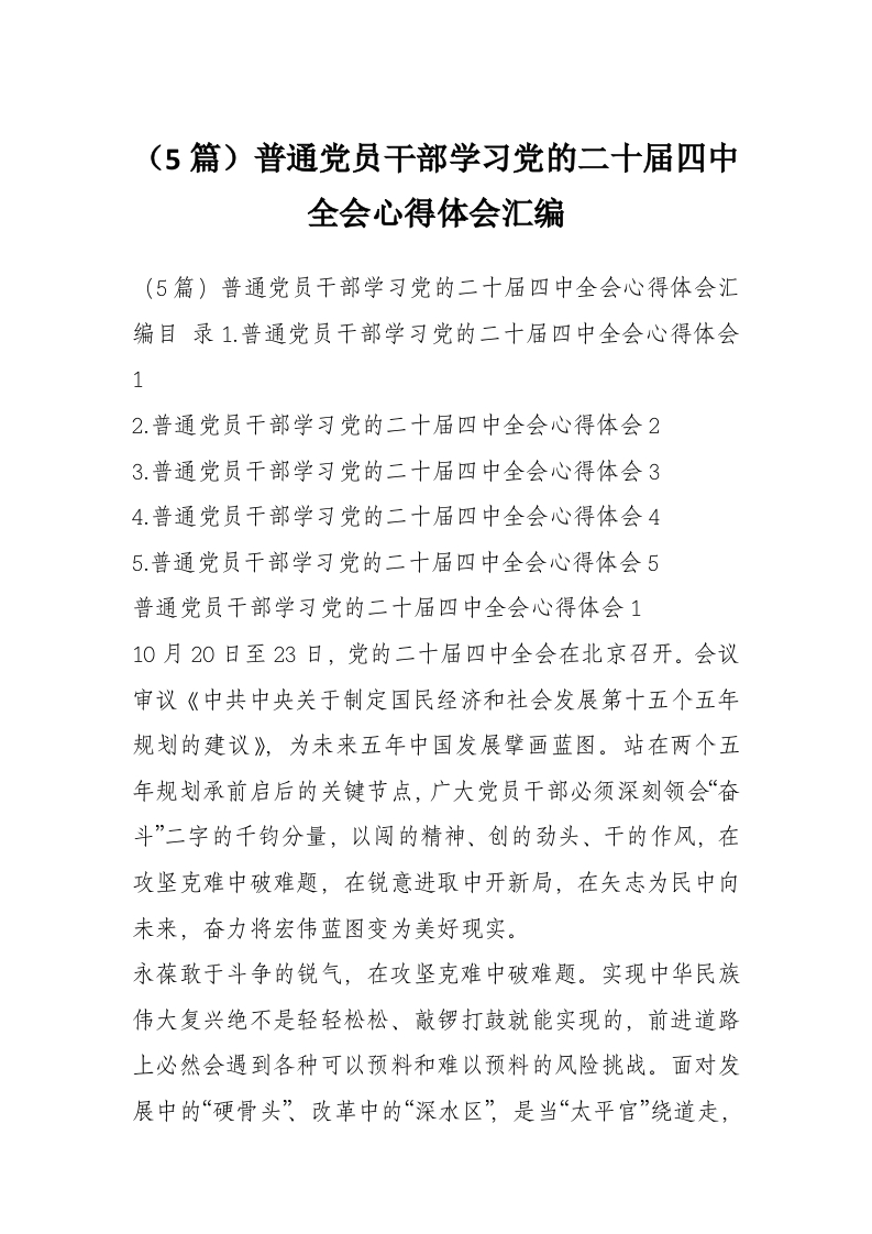 (5篇)普通党员干部学习党的二十届四中***心得体会汇编