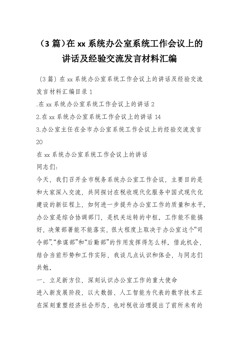 (3篇)在xx系统办公室系统工作会议上的讲话及经验交流发言材料汇编