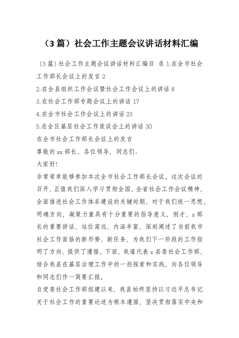 首页材料汇编(3篇)社会工作主题会议讲话材料汇编
