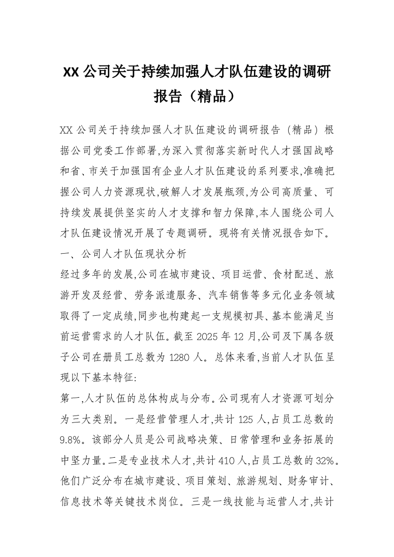 XX公司关于持续加强人才队伍建设的调研报告(精品)
