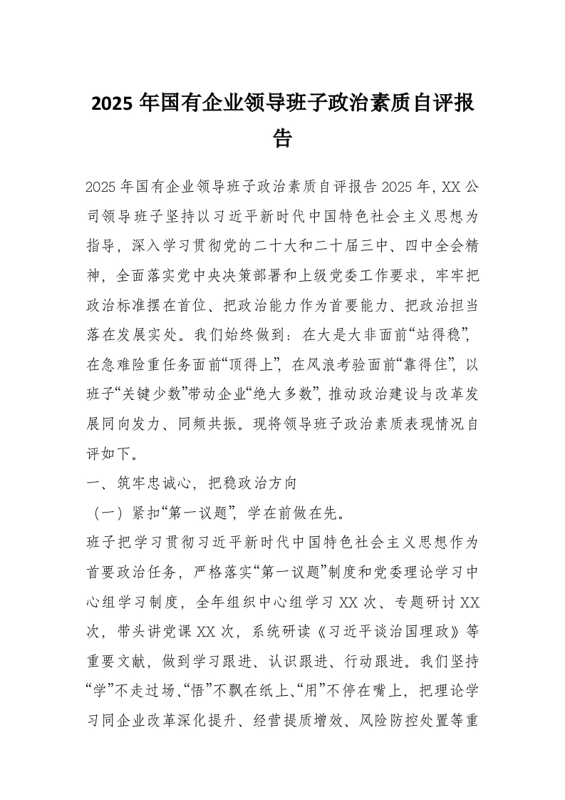 2025年国有企业领导班子政治素质自评报告