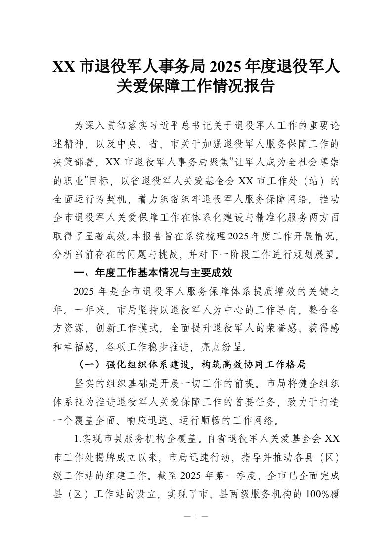 XX市退役军人事务局2025年度退役军人关爱保障工作情况报告