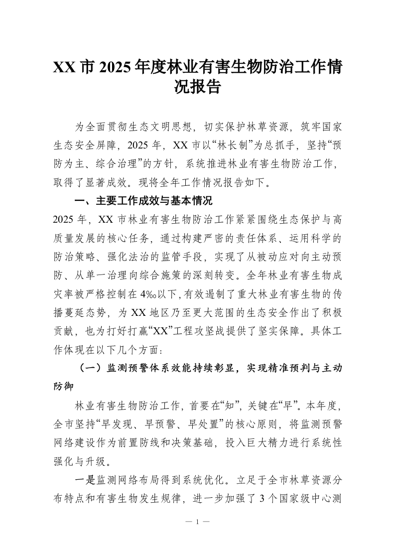 首页工作文档XX市2025年度林业有害生物防治工作情况报告