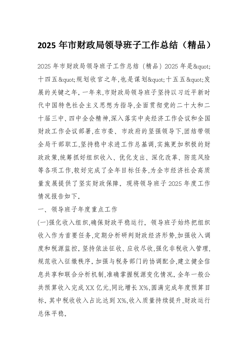 2025年市财政局领导班子工作总结(精品)