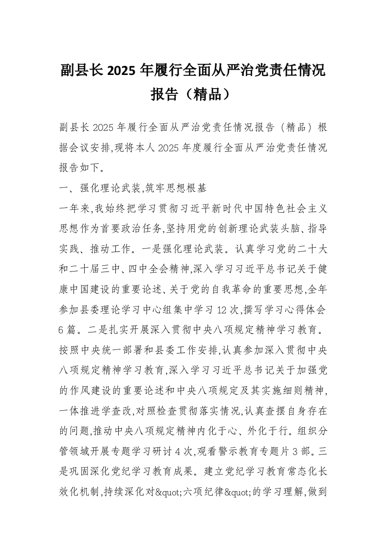 副县长2025年履行全面从严治党责任情况报告(精品)