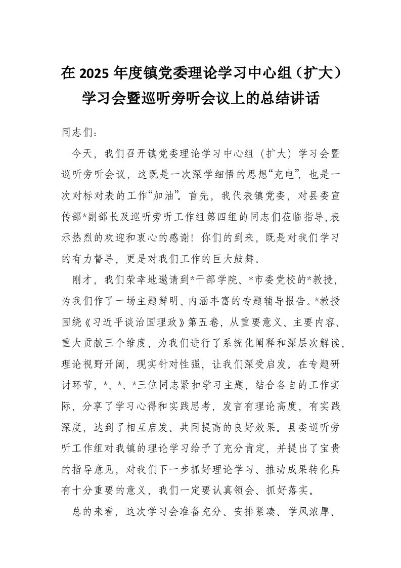 在2025年度镇党委理论学习中心组(扩大)学习会暨巡听旁听会议上的总结讲话