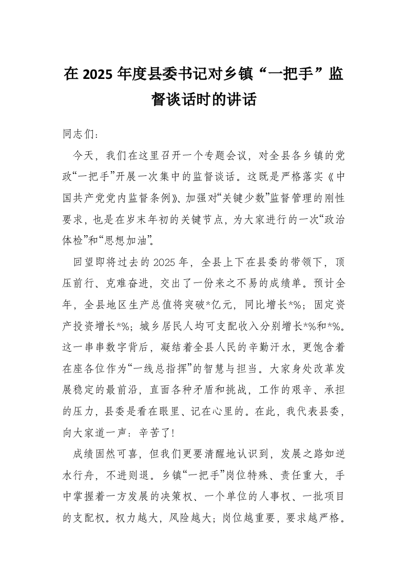 在2025年度县委书记对乡镇“一把手”监督谈话时的讲话