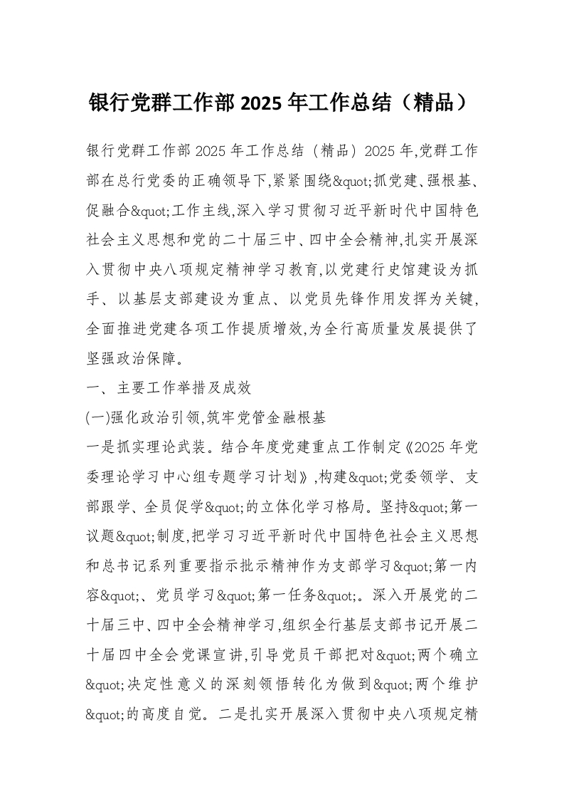 首页写作素材银行党群工作部2025年工作总结(精品)