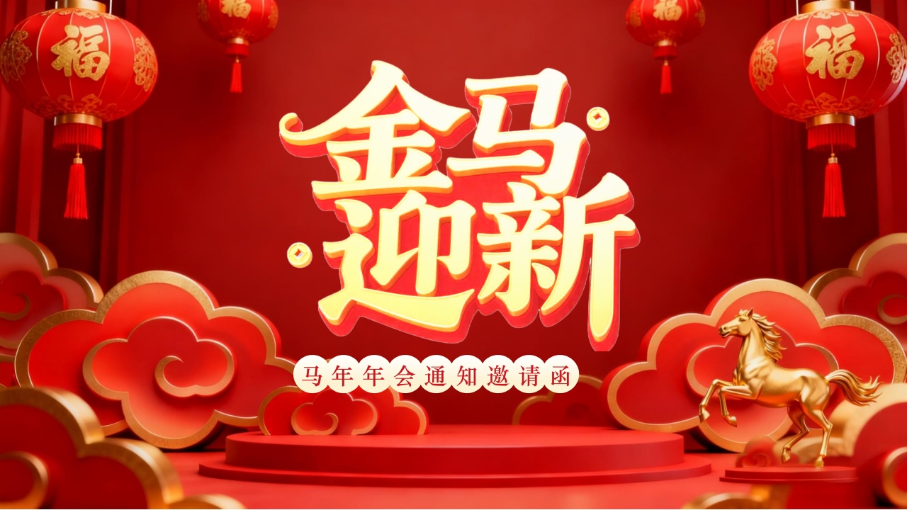 首页PPT模板红色喜庆风马年年会通知邀请函PPT模板