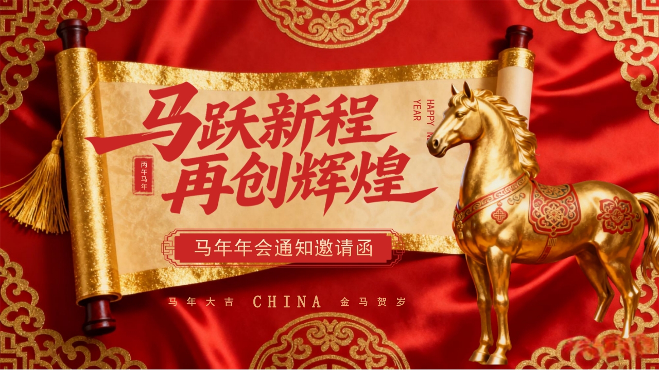 首页PPT模板喜庆风2026年马年年会邀请函PPT模板