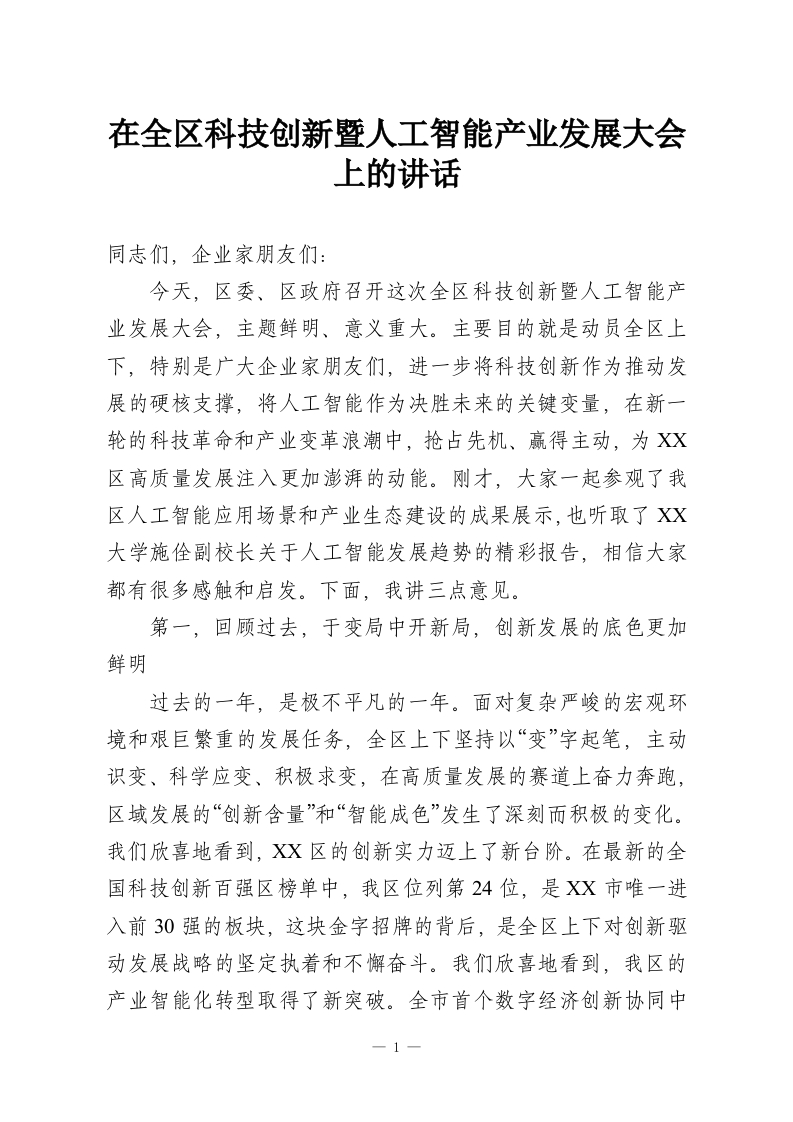 首页精选范文在全区科技创新暨人工智能产业发展大会上的讲话