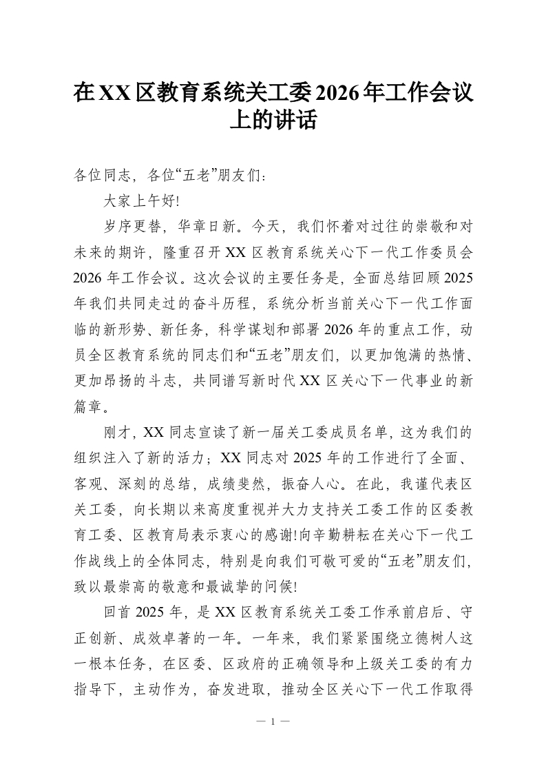 首页精选范文在XX区教育系统关工委2026年工作会议上的讲话